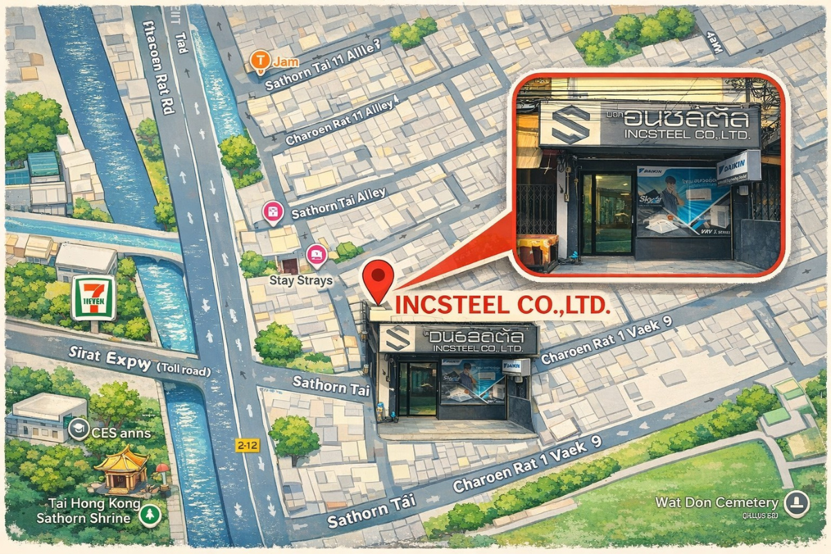 CONTACT US INCSTEEL CO.,LTD. บริษัท อินซ์สตีล จำกัด Location เลขที่ 119 ซอยเจริญราษฎร์1 แขวงยานนาวา เขตสาทร กรุงเทพมหานคร 10120 Working Hours วัน จันทร์ – ศุกร์ 8:00-17:00 น. Phone Number โทร 02-120-4763มือถือ 089-133-8449